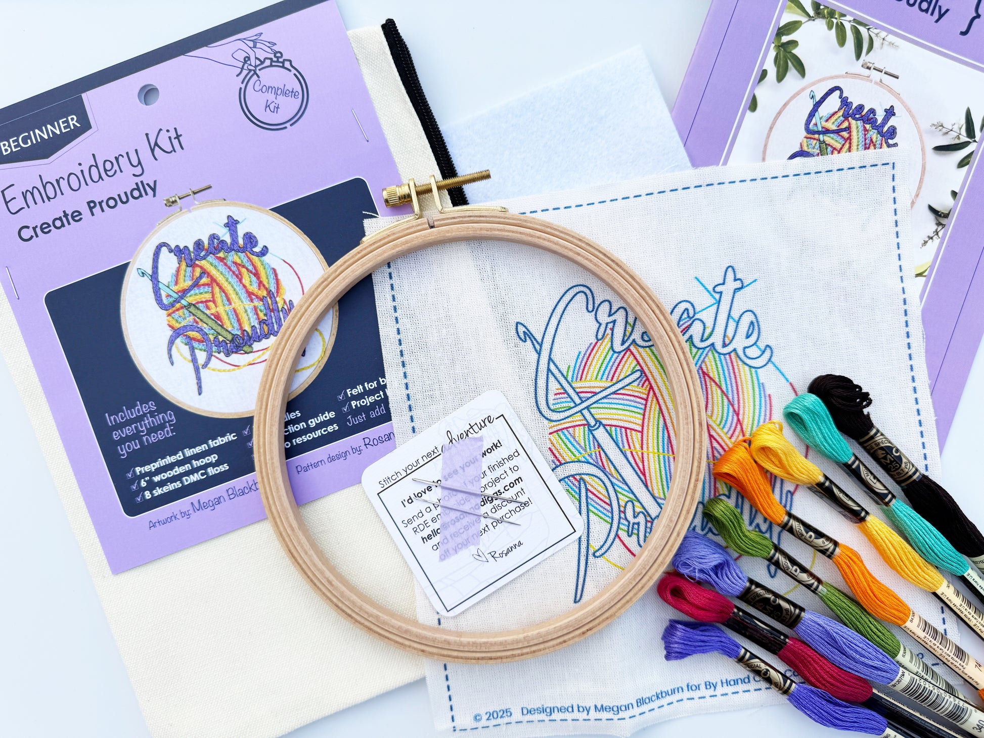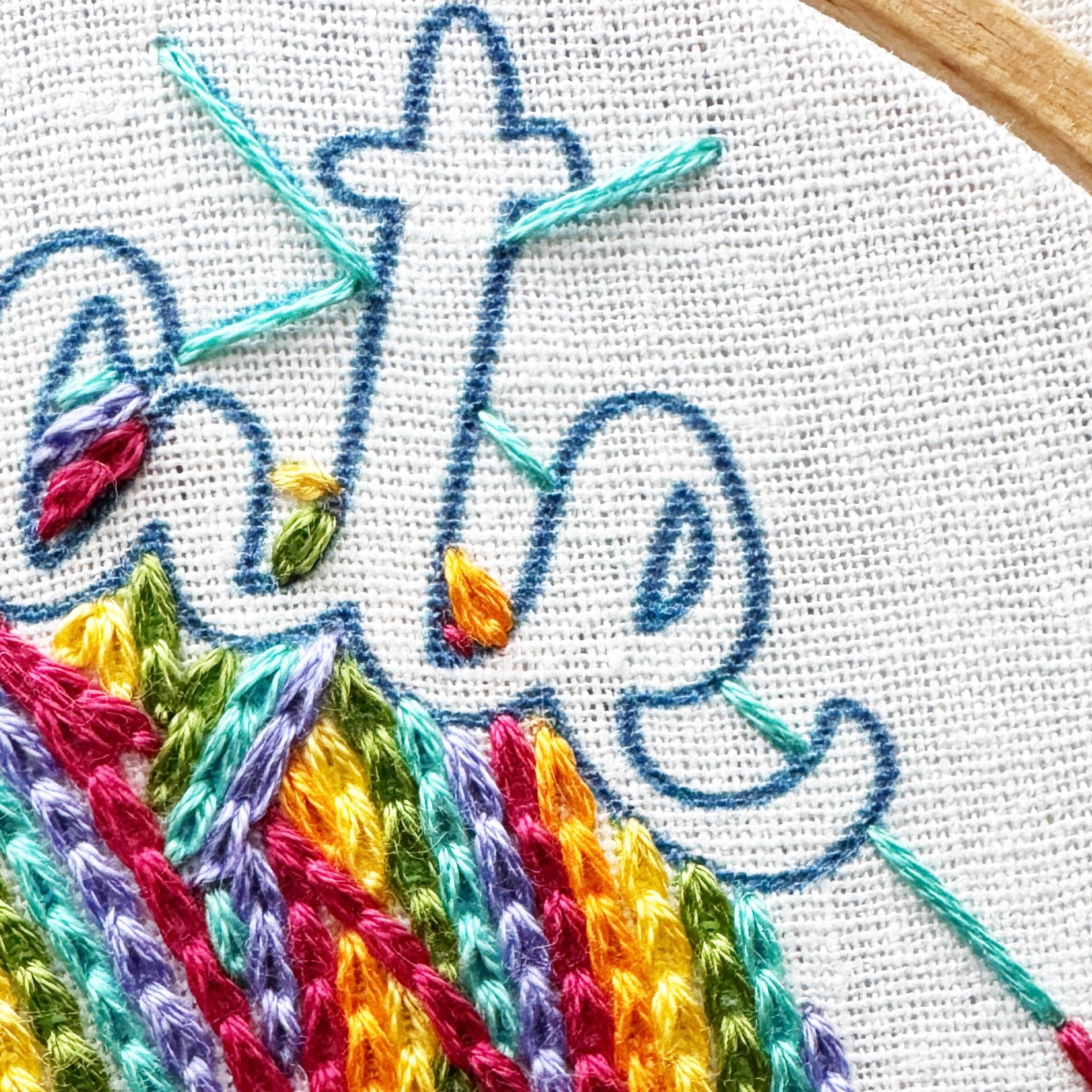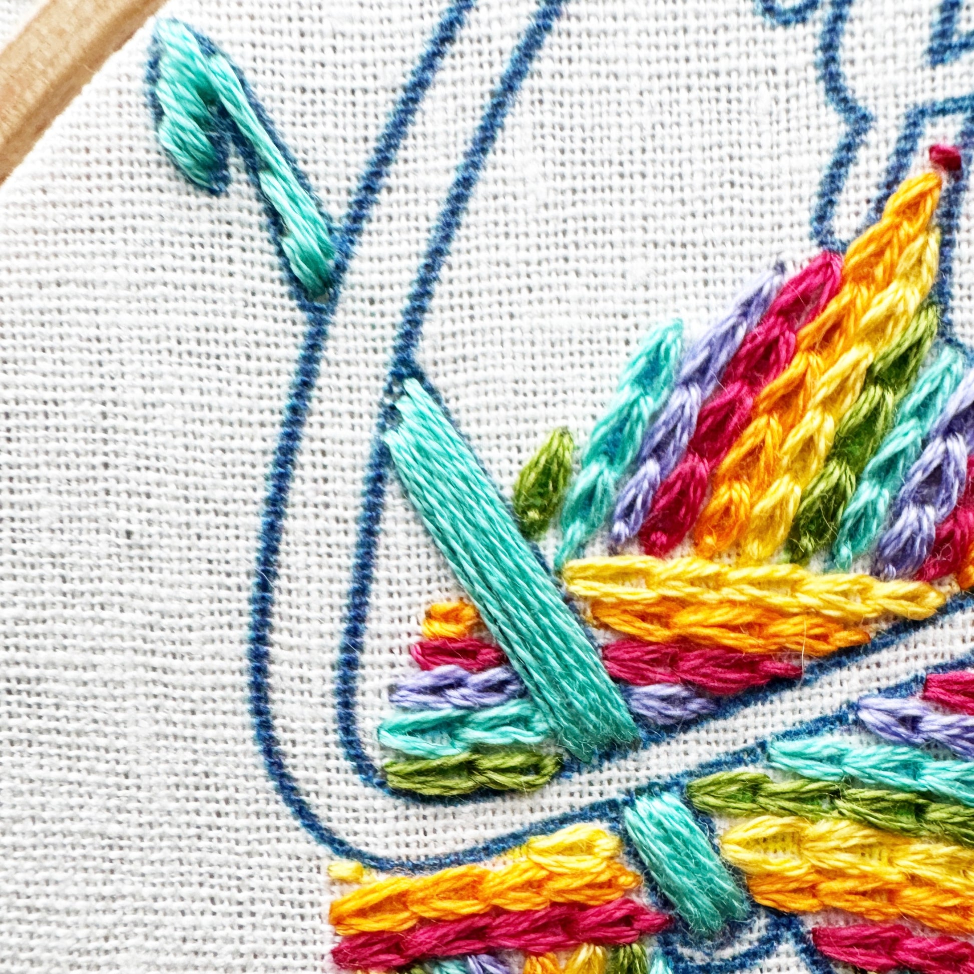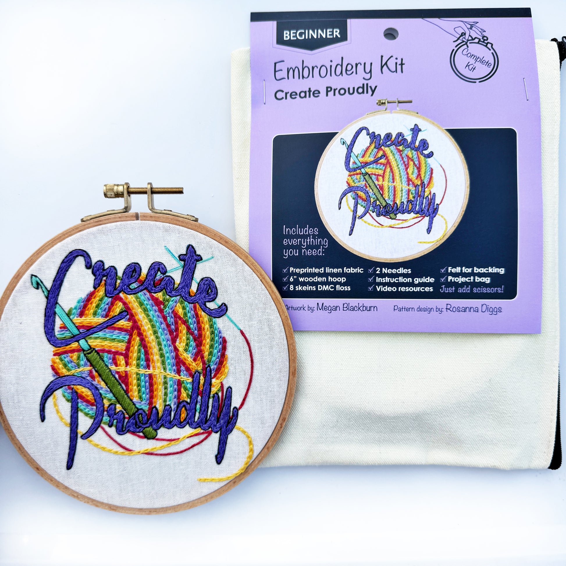 Introducing our first preprinted hand embroidery kit. This vibrant ball of yarn and tools was designed by Megan B. Megan created a wonderful design and we are so happy to bring it to you as a kit so you can stitch it!