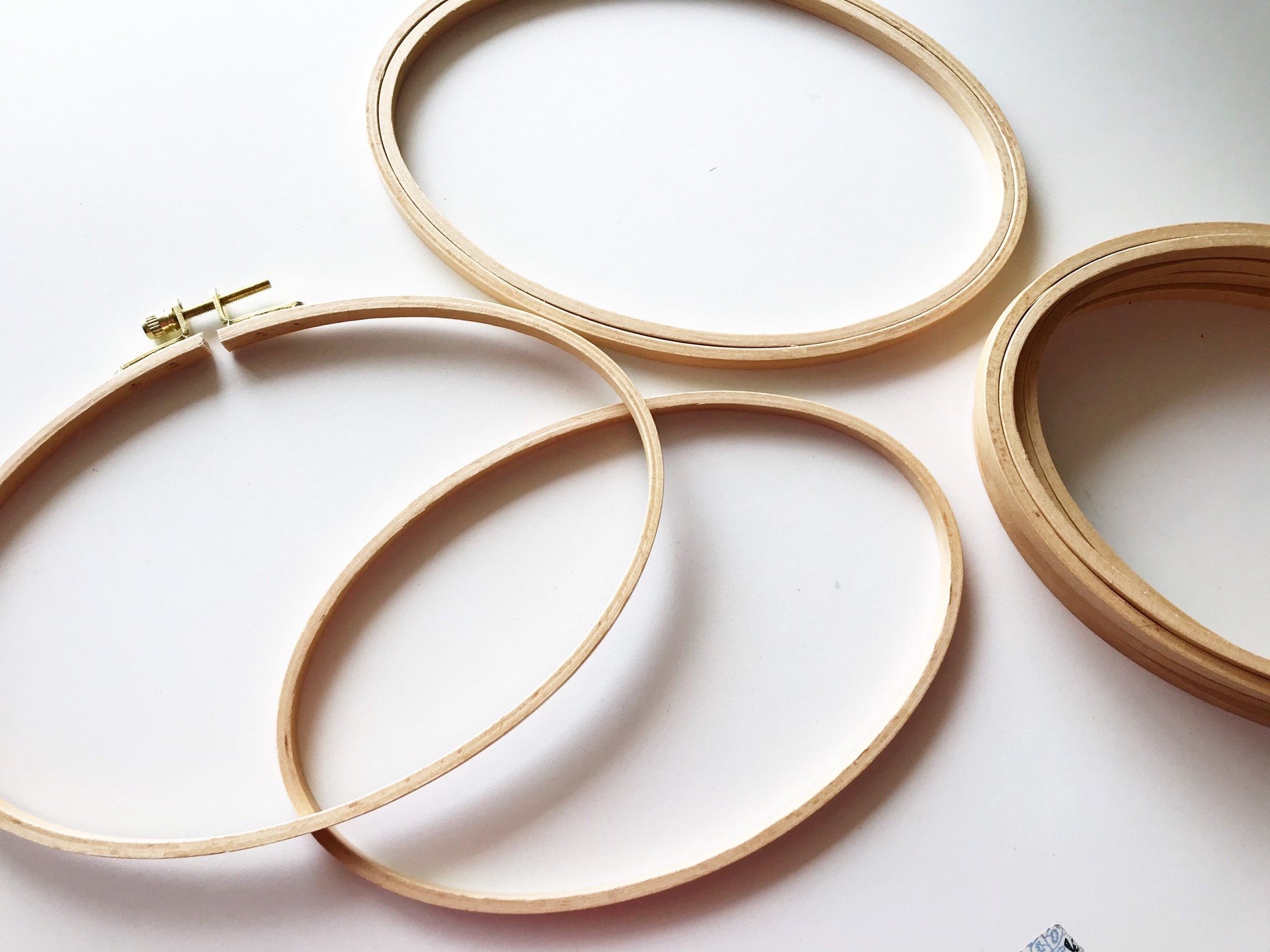 - Round Beech Wood Embroidery Hoops in 3", 4", 6”, and 8"