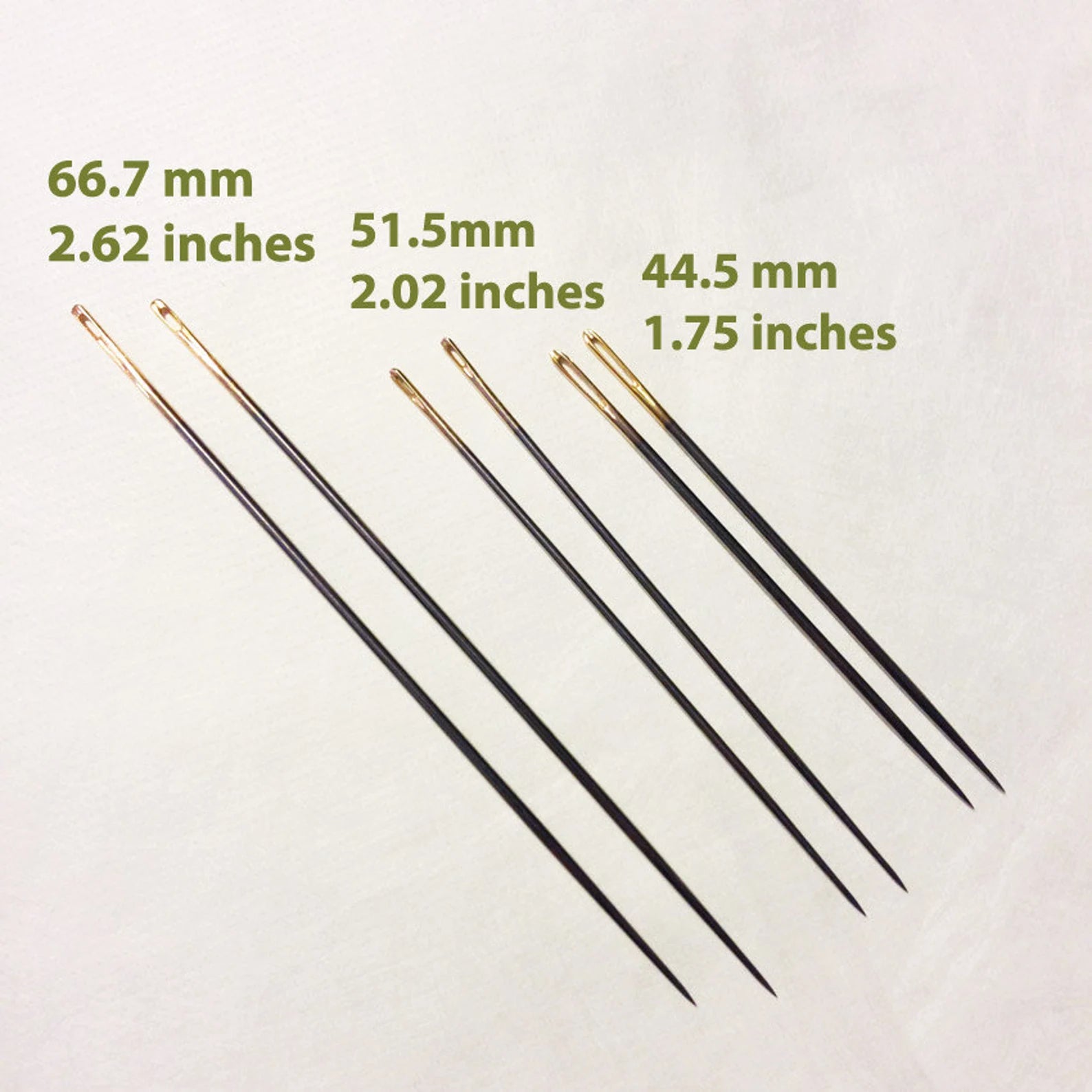 Set of 6 Tulip Sashiko Long Needles. Variety of sizes lets you choose which one works best for you. Super sharp to pick up a long stretch of stitches.